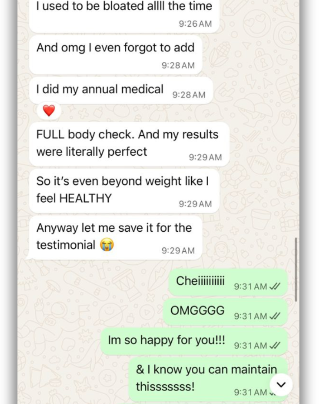 I feel fuller, more energized, and I’m already seeing results I never thought possible. You have such a unique approach, breaking things down in a way that truly connects with me. I’m genuinely excited for what’s next and can’t believe I’m finally moving forward on my goals!"
